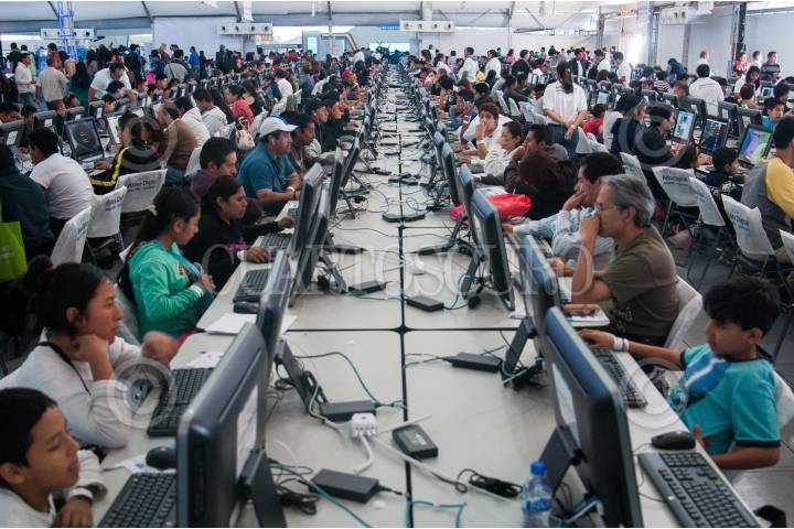 MÉXICO, D.F., 11JULIO2015.- Cientos de personas de todas las edades asistieron al segundo día de la Aldea Digital, el evento sobre tecnología más grande del mundo, que estará abierto al público en forma gratuita del 10 al 26 de julio, en donde el público podrá aprender sobre el manejo de internet, gadgets, y entretenimiento digital sin importar su nivel de conocimiento en tecnología. FOTO: DIEGO SIMÓN SÁNCHEZ /CUARTOSCURO.COM
