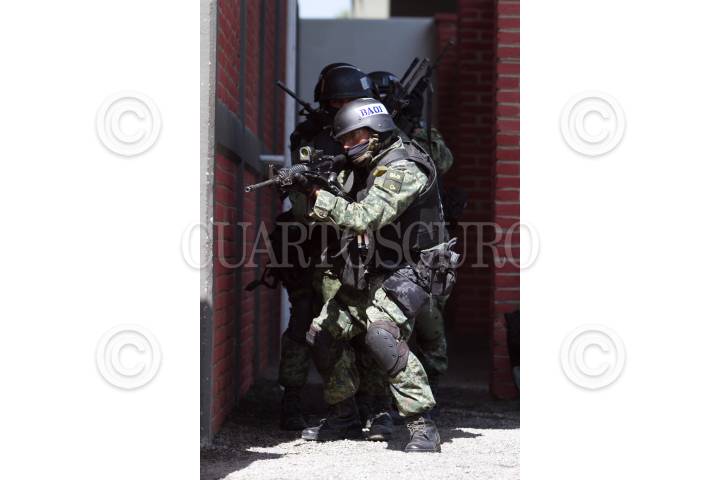 VERACRUZ, VERACRUZ., 10FEBRERO2012.- Personal de las fuerzas especiales pertenecientes a la VI Región Militar de la Secretaría de la Defensa Nacional, realizaron una demostración táctica la cual consistió en detener a narcotraficantes que viajaban a bordo de una camioneta. La demostración se llevo acabo en el marco del Operativo Veracruz Seguro. FOTO: FÉLIX MÁRQUEZ/CUARTOSCURO.COM