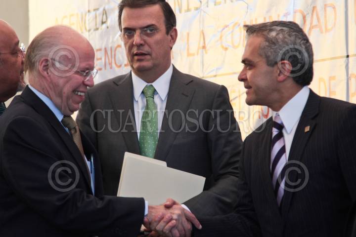 MÉXICO, D.F., 25OCTUBRE2011.- Jose Narro, rector de la UNAM junto a Marcelo Ebrard Casaubon, Jefe de Gobierno Capitalino y Miguel Ángel Mancera, Procurador Capitalino durante la inauguracionde la Agencia del Ministerio Publico Especializada en Atencion a la Comunidad Universitaria. FOTO: ENRIQUE ORDÓÑEZ/CUARTOSCURO.COM