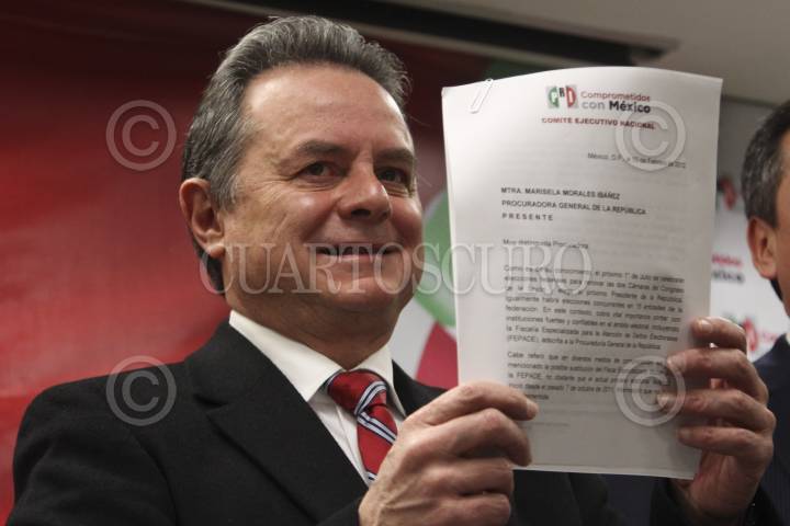 MÉXICO, D.F., 13FEBRERO2012.- Pedro Joaquín Coldwell, Presidente Nacional del PRI, en conferencia ante los medios de comunicación, dio a conocer una carta que le enviara a Marisela Morales, Procuradora General de la República donde pide una explicación sobre la presunta salida de José Luis Vargas quien es el actual director de la Fiscalía Especializada para la Atención de Delitos Electorales (Fepade). FOTO: ENRIQUE ORDÓÑEZ/CUARTOSCURO.COM