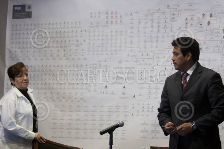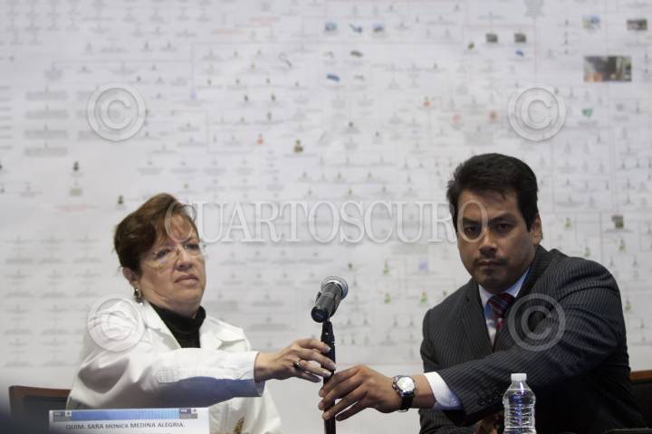 MÉXICO, D.F., 27FEBRERO2012.- Cuitláhuac Salinas, titular de la Subprocuraduría de Investigación Especializada en Delincuencia Organizada (SIEDO) aseguró que tras el homicidio de los dos estudiantes de la escuela Normal Rural de Ayotzinapa, fue alterada la escena del crimen y se desaparecieron pruebas en la investigación. Además fueron policías ministeriales de Guerrero, los que dispararon en contra de los normalistas, dos de los cuales murieron al ser alcanzados por las balas de armas de alto poder que fueron utilizadas en día de la refriega el pasado 12 de diciembre sobre la autopista del Sol, en su trama que pasa por Chilpancingo. En la conferencia de prensa estuvo acompañado de la perito Sara Mónica Medina Alegría. FOTO: IVÁN STEPHENS/CUARTOSCURO.COM