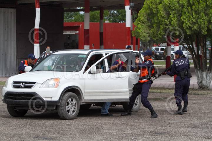 CIUDAD JUAREZ, CHIHUAHUA, 28JULIO2010.- Un gran número de elementos federales y municipales llegaron a las calles Manuel Bernal y Lerdo así como personal especializado en explosivos asegurando una amplia área para realizar una investigación. Por un momento se suspendieron los servicios telefónicos para evitar se pudiera presentar una explosión por medio de un teléfono celular como la de hace dos semanas. En el lugar se encontraban varios vehículos que quedaron resguardados mientras se buscaban los artefactos explosivos en los que se utilizaron detectores moleculares y perros olfateadores encontrando en una Pick up y un vehículo Corvette armas y casquillos percutidos. Por el momento los dos vehículos quedarán asegurados para continuar con la investigación. FOTO: IGNACIO RUIZ/CUARTOSCURO.COM