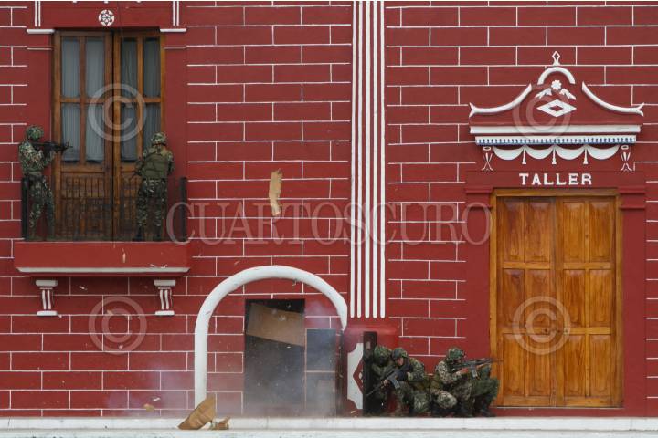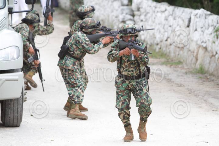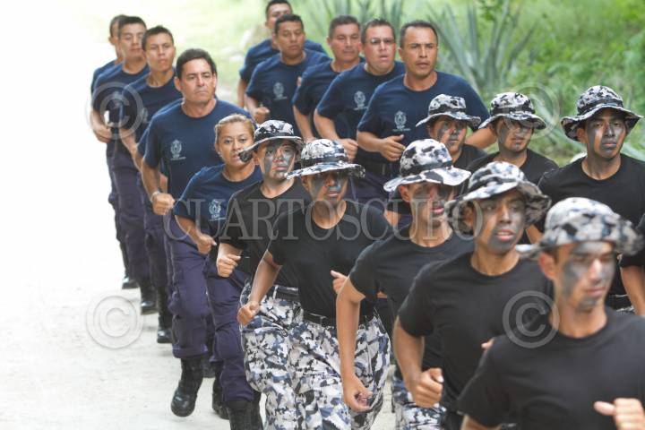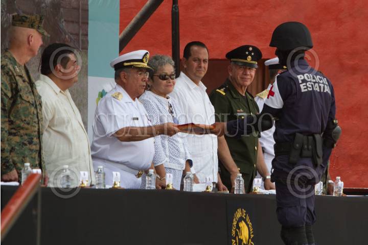 SAN LUIS CARPIZO, CAMPECHE., 19JULIO2012.- Mariano Francisco Saynez Mendoza, encabezo la Ceremonia de Graduación en el Centro de Capacitación y Adiestramiento Especializado de Infantería de Marina, en la cual egresaron 81 mujeres y 694 hombres, de los cuales 39 mujeres y 167 hombres son de la Secretaría de Seguridad Pública del Estado de Veracruz. Marinos de los Estados Unidos observan las practicas de los infantes de marina durante la demostración de ejercicios tácticos. FOTO: GUILLERMO PEREA /CUARTOSCURO.COM