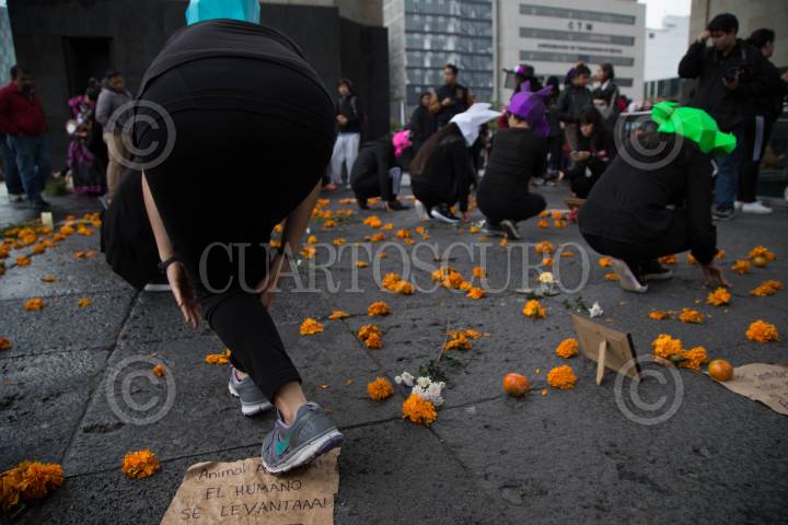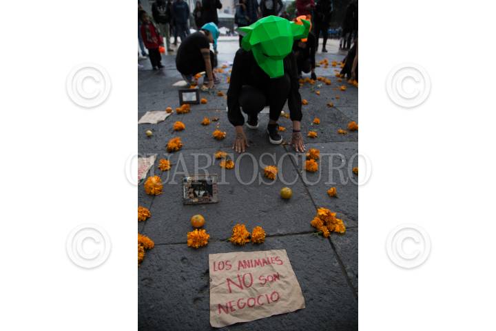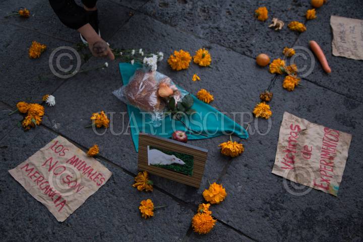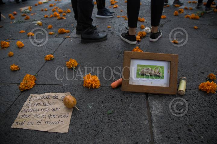CIUDAD DE MÉXICO, 02NOVIEMBRE2018.- Activistas de la organización Anonymous for the Voiceless realizaron un performance/ofrenda para los animales que perecen por la mano humana, el especismo y maltrato. FOTO: ILSE HUESCA /CUARTOSCURO.COM
