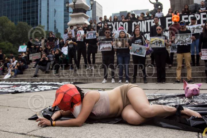 CIUDAD DE MÉXICO, 18NOVIEMBRE2018.- Decenas de personas en pro de la libertad animal marcharon del Ángel de la Independencia al Palacio de Bellas Artes. Los activistas se dieron cita en las escalinatas del monumento, donde realizaron un perfomance para concientizar sobre el maltrato animal, así como la violencia que padecen los animales. FOTO: GALO CAÑAS /CUARTOSCURO.COM