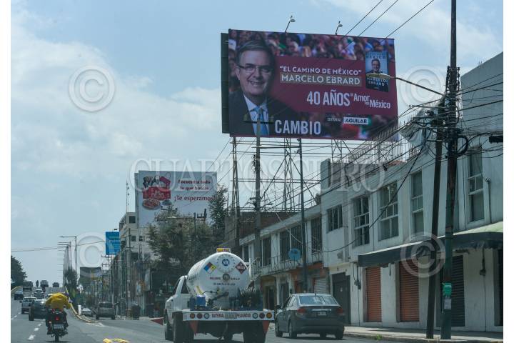 Espectaculares en el Valle de Toluca promocionando el libro “El Camino de México” de Marcelo Ebrard.