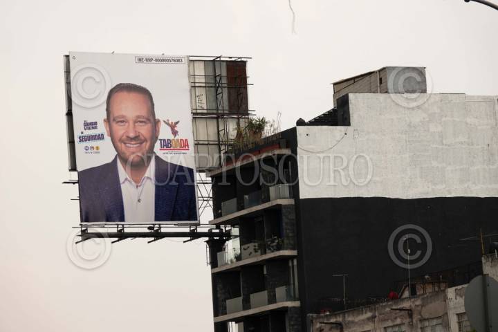 CIUDAD DE MÉXICO, 02MAYO2024.- Arriba de un edificio de departamentos, un espectacular de Santiago Taboada, candidato a Jefe de Gobierno, se asoma para hacer publicidad. FOTO: GRACIELA LÓPEZ /CUARTOSCURO.COM