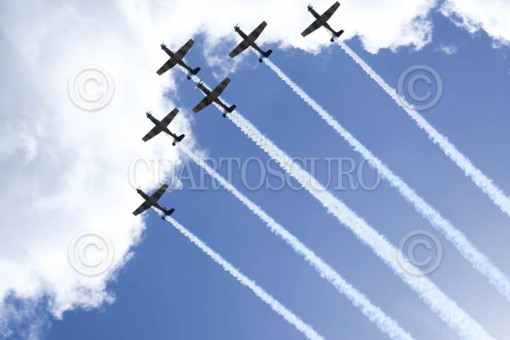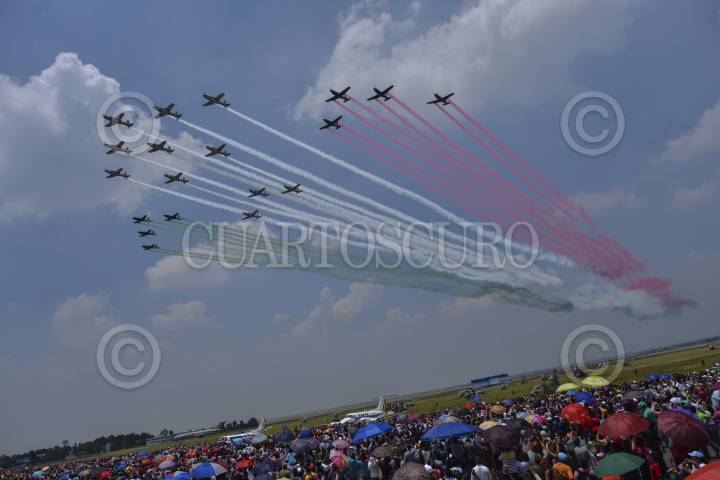 MÉXICO, D.F., 22AGOSTO2015.- Con la participación de 600 elementos en 60 aviones y 23 helicópteros se realizó el quinto espactáculo aéreo "Fueraza Aérea Mexicana… 100 Años de Lealtad", realizado en la base No. 1 de Santa Lucia. La Secretaría de la Defensa Nacional Nacional informó que tuvo una asistencia de 160 mil personas. FOTO: ADOLFO VLADIMIR /CUARTOSCURO.COM