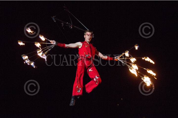 GUANAJUATO, GUANAJUATO, 09OCTUBRE2015.- La compañía irlandesa Fidget Fee Aerial Dance Theatre, presentó en el Fro los Pastitos, el espectáculo "Firebirds", combinación de videoarte, música, circo y danza siendo parte de la edición XLIII del Festival Internacional Cervantino 2015. FOTO: ADOLFO VLADIMIR /CUARTOSCURO.COM