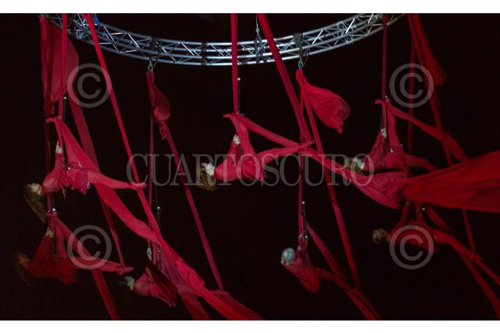 GUANAJUATO, GUANAJUATO, 09OCTUBRE2015.- La compañía irlandesa Fidget Fee Aerial Dance Theatre, presentó en el Foro los Pastitos, el espectáculo "Firebirds", combinación de videoarte, música, circo y danza siendo parte de la edición XLIII del Festival Internacional Cervantino 2015. FOTO: ADOLFO VLADIMIR /CUARTOSCURO.COM