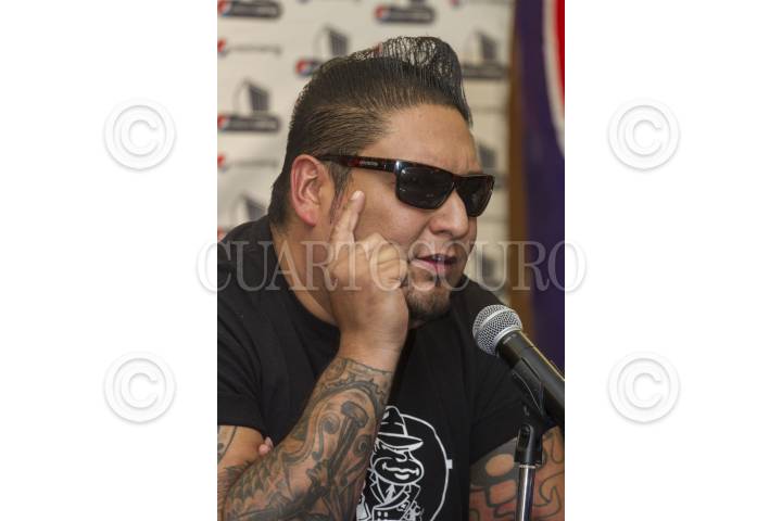 MÉXICO, D.F., 19ENERO2016.- Big Javy, vocalista del grupo Inspector, durante la conferencia de prensa que ofreció la banda regia para hablar de su próxima presentación en el Pepsi Center, con motivo de su 20 aniversario. FOTO: ISAAC ESQUIVEL /CUARTOSCURO.COM