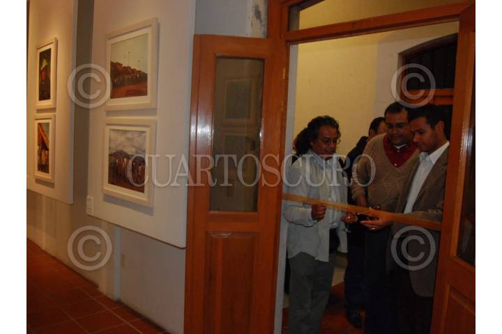 ZACATECAS, ZACATECAS, 27SEPTIEMBRE2008.- El maestro Pedro Valtierra Ruvalcaba; Director de la Fototeca de Zacatecas y Christian Begue; Director de la Alianza Francesa de Zacatecas, hicieron el corte de liston de la inaguración de la exposición del fotografo David Beker; "Melanesia Espejo Doble", en donde se retrata el choque brutal de 2 culturas, la ancestral con sus costumbres y cultura que vive al día en armonia con la naturaleza y la moderna que explota la naturaleza con los adelantos tecnológicos del Siglo XXI. FOTO: CARLOS SEGURA/CUARTOSCURO.COM