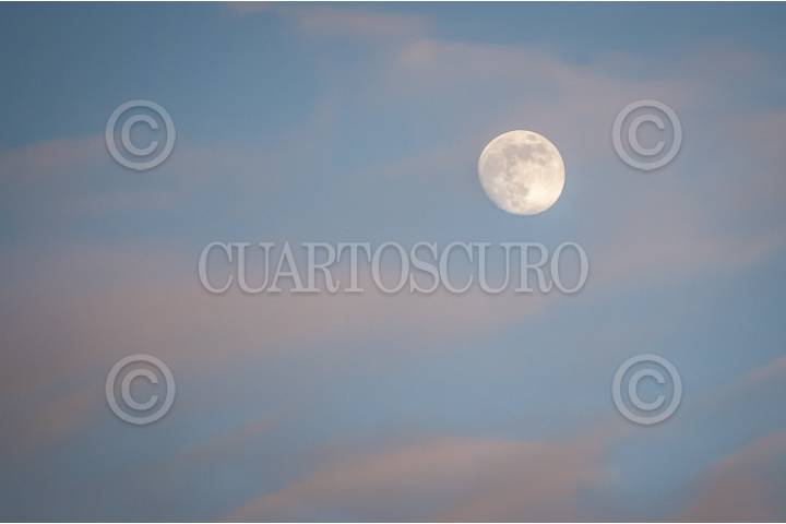 MÉXICO, DF., 19AGOSTO2013.- La luna de ayer en su fase creciente, antesala de la próxima luna llena, brilla como un gran espejo que refleja la luz del Sol, a pesar de que el astro se encuentra frente a ella del otro lado del mundo. FOTO: DIEGO SIMÓN SÁNCHEZ /CUARTOSCURO.COM