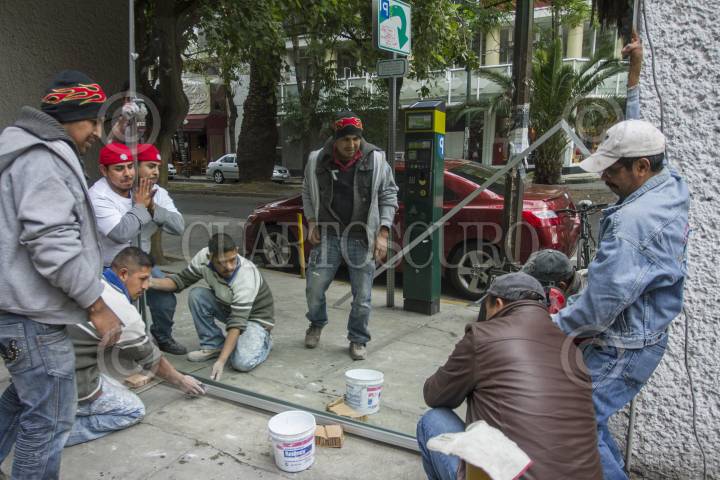 MÉXICO, D.F., 26DICIEMBRE2014.- Trabajadores de la construcción colocan una espejo en una estética en la colonia Roma. FOTO: ISAAC ESQUIVEL /CUARTOSCURO.COM
