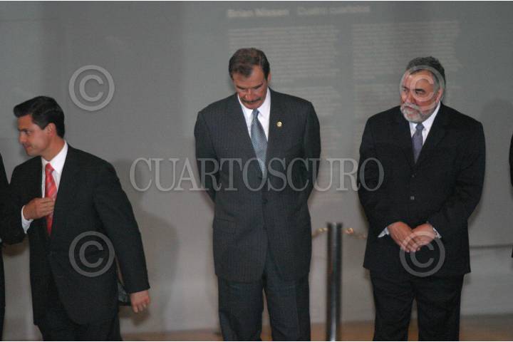 MÉXICO, D.F. 23FEBRERO2006.- Enrique Peña Nieto, Gobernador del Estado de México, el presidente Vicente Fox Quesada y Alejandro Encinas Jefe de gobierno del D.F. durante la inauguración de la conferencua Urban Age Ciudad de México. FOTO:Miriam Sánchez/CUARTOSCURO.COM