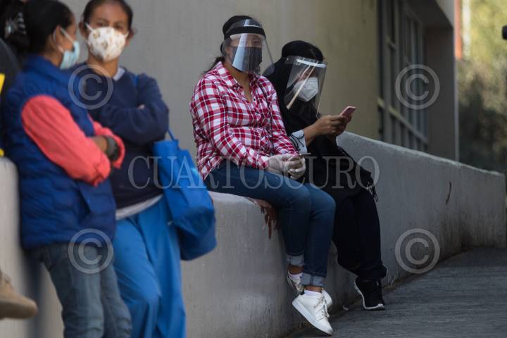 Familiares de pacientes con el virus Covid-19 esperan afuera del Hospital Regional "General Ignacio Zaragoza"