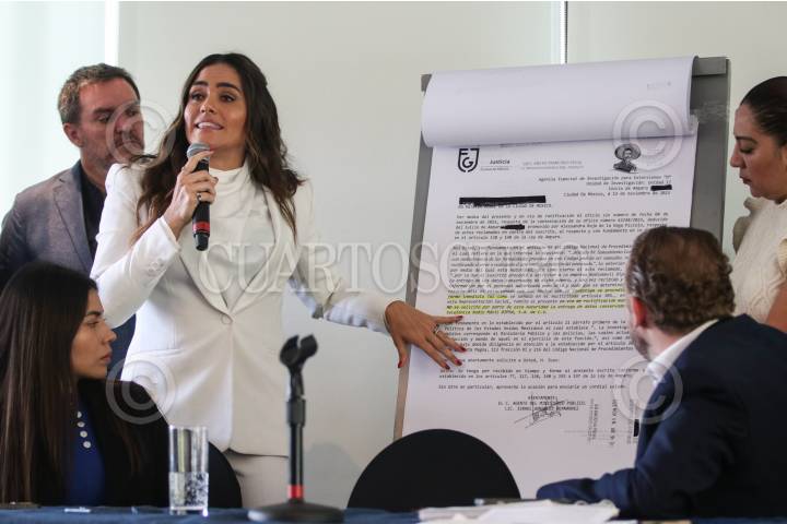 CIUDAD DE MÉXICO, 12DICIEMBRE2023.- Alessandra Rojo de la Vega durante conferencia de prensa donde presentan supuestas pruebas sobre espionaje por parte del gobierno. FOTO: ANDREA MURCIA /CUARTOSCURO.COM