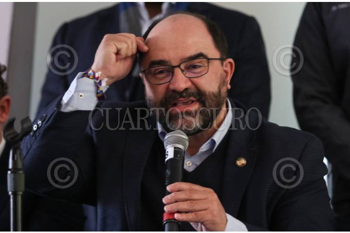 CIUDAD DE MÉXICO, 12DICIEMBRE2023.- l Santiago Creel durante conferencia de prensa donde presentan supuestas pruebas sobre espionaje por parte del gobierno. FOTO: ANDREA MURCIA /CUARTOSCURO.COM