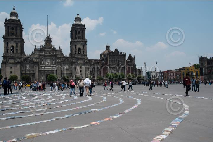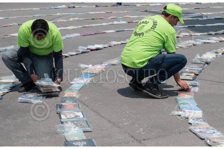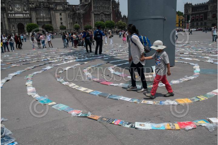 CIUDAD DE MÉXICO, 05MARZO2018.- En el Zócalo capitalino se comenzó el proceso del “Espiral de libros más grande del mundo”; con un total de 13,331 piezas. Esta iniciativa tiene como fin que en las cárceles haya más libros que presos. FOTO: ANDREA MURCIA /CUARTOSCURO.COM