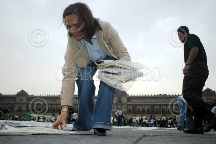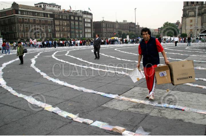 MEXICO D.F. 26 OCTUBRE2005.- En el zocalo capitalino se realizo la espiral de libros más grande del mundo comenzó con El Ingenioso Hidalgo Don Quijote de la Mancha y cada 400 libros éste clásico de la literatura. Con los libros de la espiral se obsequieran a diversas cárceles para crear en ellas bibliotecas y salas de lectura. FOTO: Miguel Dimayuga/CUARTOSCURO.COM