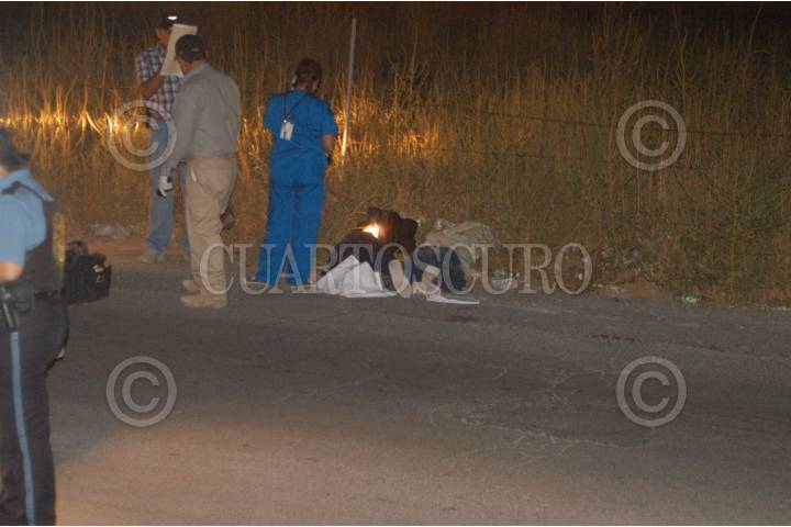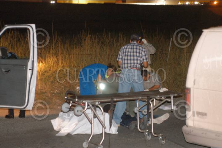 CIUDAD JUÁREZ, CHIHUAHUA, 16OCTUBRE DEL 2008.- La madrugada de ayer autoridades ministeriales luego de una llamada encontraros los cuerpos sin vida de tres hombres que fueron ejecutados sobre el pavimento y frente a un lote baldío en las calles Zacatecas y Miguel Hidalgo de la Colonia Salvarcar, los cadáveres estaban esposados y presentaban múltiples orificios de bala en la cabeza. FOTO: BIENINFORMADO.COM/CUARTOSCURO.COM