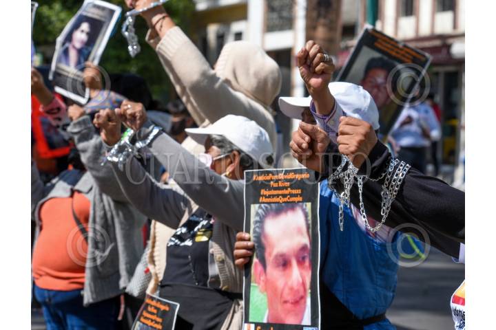 De rodillas integrantes de Haz Valer Mi Libertad pidieron amnistía a sus injustamente presos, en las inmediaciones del Tribunal Superior de Justicia en donde se llevaba a cabo el Segundo Informe de Ricardo Sodi Cuellar Magistrado presidente del TSJEM.