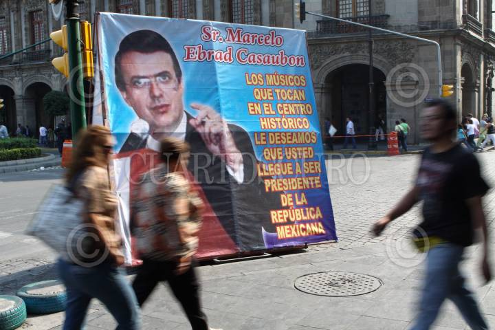 MÉXICO, D.F., 26NOVIEMBRE2010.- Una manta de apoyo al jefe de gobierno Marcelo Ebrard fue colocada en la esquina de 16 de Septiembre y Plaza de la Constitución. FOTO: RODOLFO ANGULO/CUARTOSCURO.COM