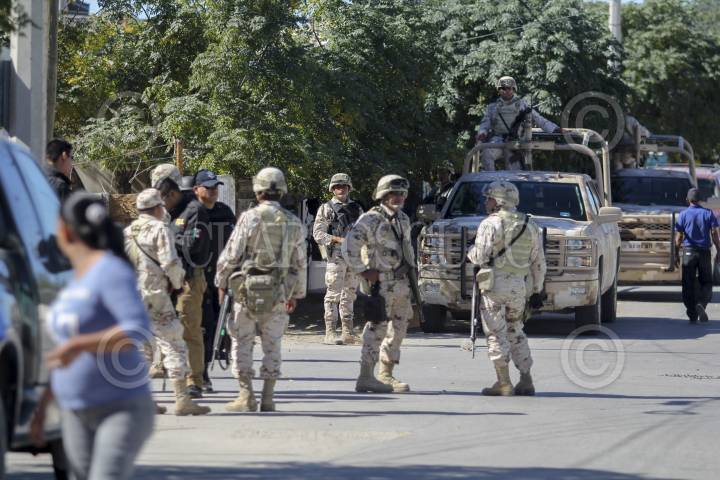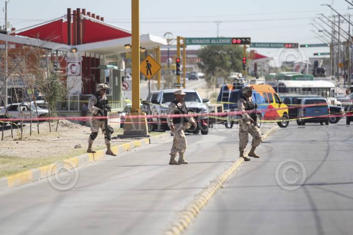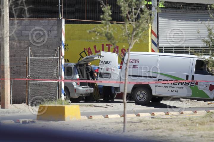 CIUDAD JUÁREZ, CHIHUAHUA, 19OCTUBRE2016.- Continua la ola de violencia en Ciudad Juárez Cinco hombre fueron acribillados en el interior de un negocio denominado "Pokes's Barber Shop" de una estética en los cruces de la bulevar Zaragozay y Ejido Galeana. Entre los muertos se encuentran clientes y empleados, las edades de los fallecidos son entre los 25 y 35 años. A la zona llegaron decenas de unidades policiacas ministeriales, municipales, ejercito y policía federal pero no se reportó ningún arresto en los primeros momentos. En lo que va del mes de octubre han sido asesinadas 63 personas. FOTO: NACHO RUIZ /CUARTOSCURO.COM