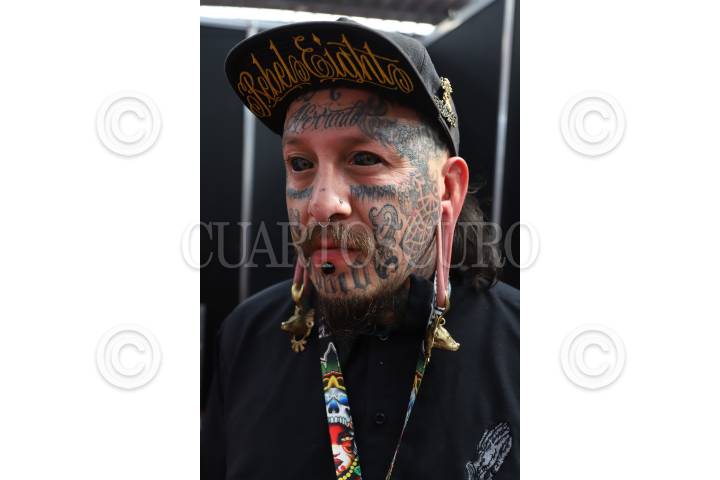 Retrato a un artista del tatuaje durante la expo Tattooarte en la Sala de Armas de Ciudad Deportiva.