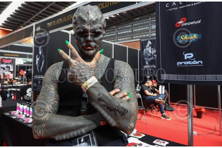 El francés Anthony Loffredo mejor conocido por The Black Alien asistió a la Expo Tattooarte México 2021 en la Sala de Armas de Ciudad Deportiva, en la que se muestra el trabajo de diversos artistas nacionales e internacionales del tatuaje.