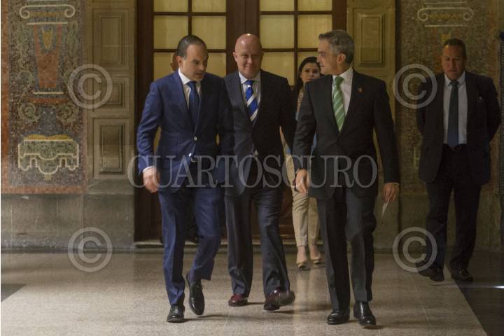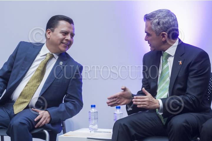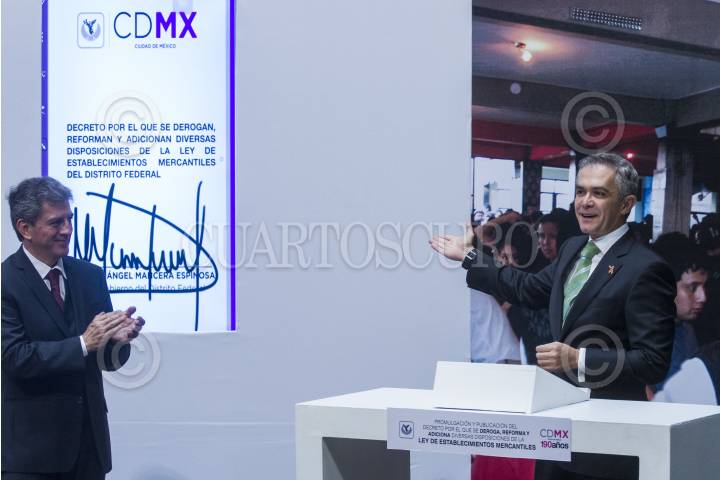 MÉXICO, D.F., 08JUNIO2015.- Manuel Granados Covarrubias, presidente de la Comisión de Gobierno de la Asamblea Legislativa del Distrito Federal, y Miguel Ángel Mancera, jefe de Gobierno local, durante la Promulgación del Decreto por el que se derogan, reforman y adicionan diversas disposiciones de la Ley de Establecimientos Mercantiles del D.F. FOTO: ISAAC ESQUIVEL /CUARTOSCURO.COM