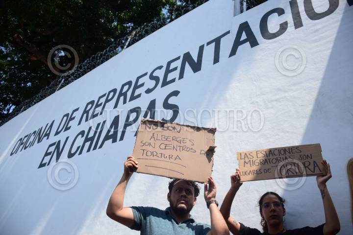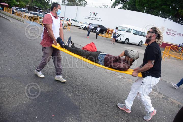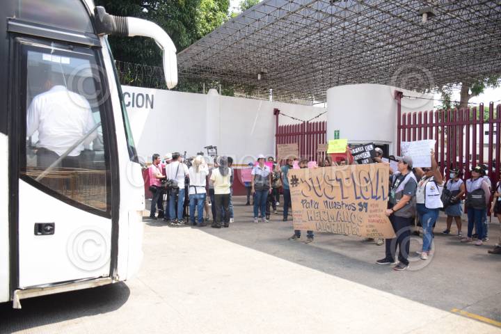 Organizaciones civiles protestaron afuera de la estación migratoria siglo XXI en tapachula, gritaban consignas " libertad a los migrantes" con pancartas en manos se acoloraron en la entrada de éste resinto,, minutos después, llegó un autobús de INM, proveniente de veracruz, trasladaba unas 30 personas de la población flotante, un grupo de 8 migrantes salieron por la escotilla y se fugaron.