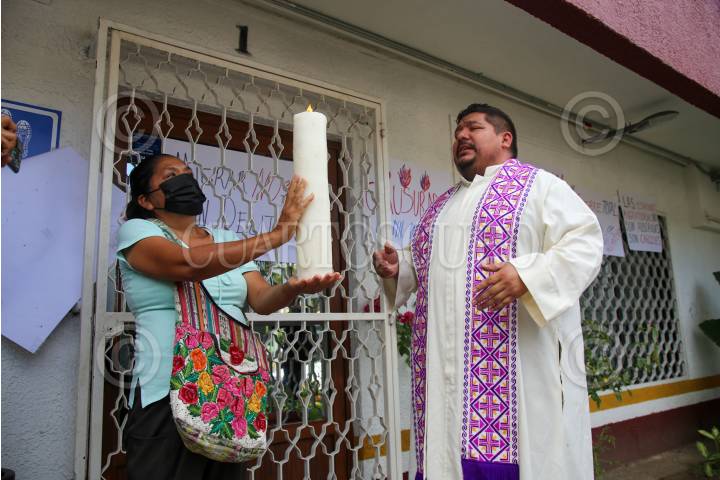 TAPACHULA, CHIAPAS, 28MARZO2025- El Centro de Derechos Humanos Fray Matías encendió veladoras y colocó el rostro del Comisionado del Instituto Nacional de Migración, Francisco Garduño, como protesta para que el Gobierno de México efectúe la reparación de daño de las 40 familias que perdieron un ser querido en la estación Migratoria en Ciudad Juárez en 2023. FOTO: DAMIÁN SÁNCHEZ/CUARTOSCURO.COM