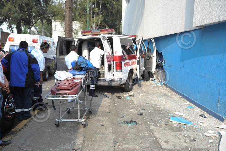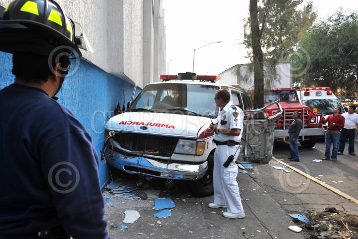 MÉXICO, D.F. 18DICIEMBRE2009.- Dos personas resultan lesionadas al impactarse la unidad medica de servicio particular con las siglas AMS numero económico 7, contra la parte trasera de un camión de carga que se encontraba estacionado sobre la calle de Sara al cruce con la calle Ferrocarril de Hidalgo en la colonia 7 de Noviembre en perímetro de la delegación Gustavo A. Madero. FOTO: LUIS CARBAYO/CUARTOSCURO.COM
