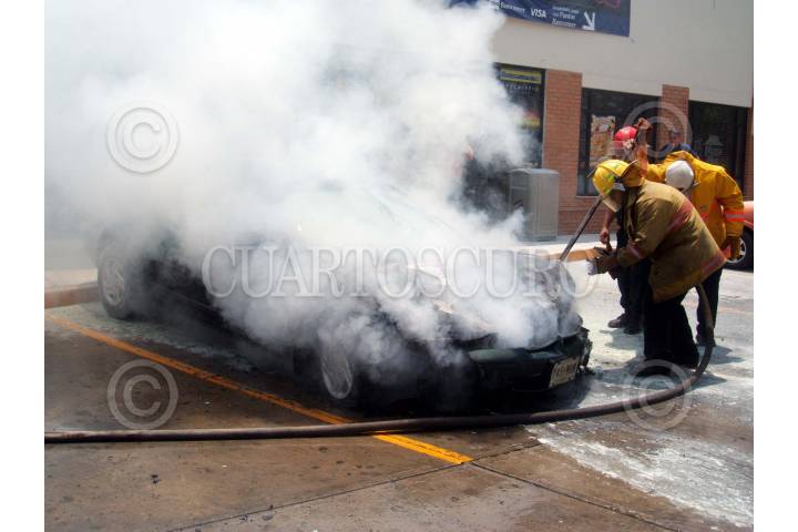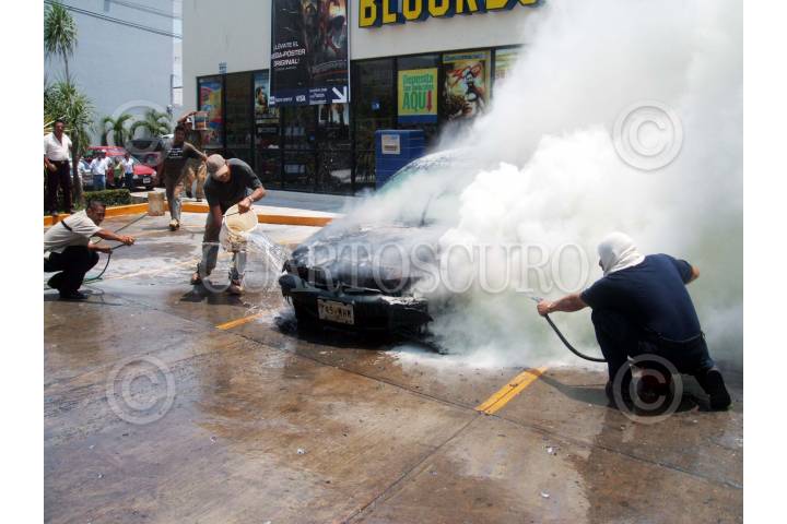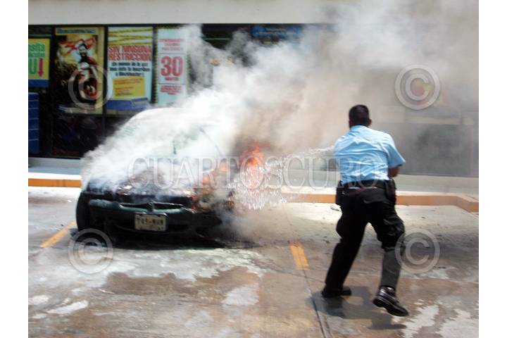 VILLAHERMOSA, TABASCO, 22JULIO2007.- Extrañamente se incendia un vehiculo lujoso con matriculas del D.F. que se encontraba estacionado en la tienda de videos de plaza Bugambilias de la zona exclusiva de Tabasco Dos Mil. En el hecho no se registro perdidas humanas, sin embargo no se descarta un posible atentado como llamado de advertencia. FOTO: MARCO POLO GUZMÁN HERNÁNDEZ/CUARTOSCURO.COM