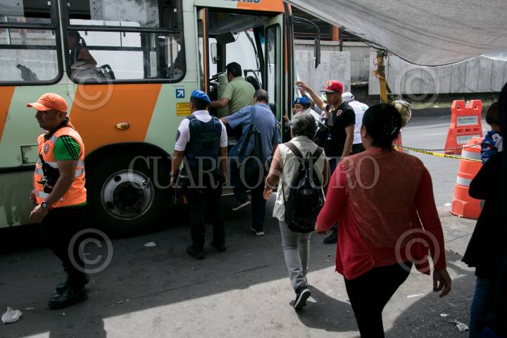 Personas fueron apoyadas por la Secretaría de Seguridad Ciudadana (SSC) para trasladarlos en patrullas del metro Tacubaya a observatorio y Chapultepec tras el incendio de las oficinas centrales del metro colectivo en la calle de Delicias.