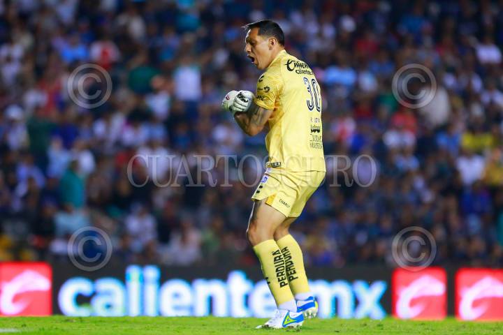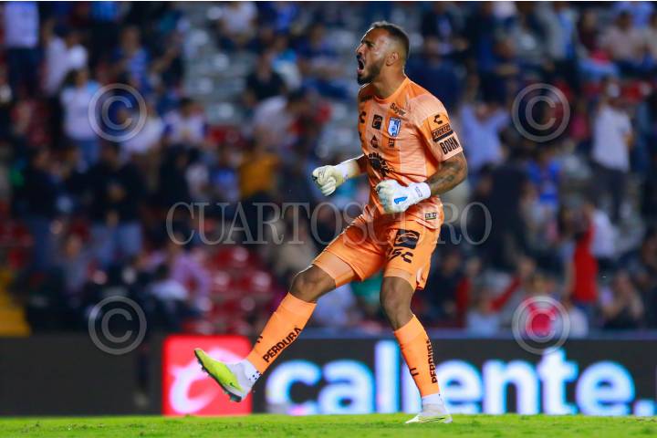 QUERÉTARO, QUERÉTARO, 29SEPTIEMBRE2023.- Guillermo Alison, portero de Querétaro en festejo de gol durante el partido de la jornada 10 del Torneo Clausura 2023 de la Liga MX, en el estadio Corregidora. FOTO: CÉSAR GÓMEZ/CUARTOSCURO.COM