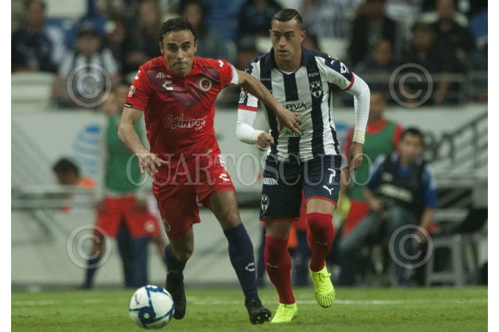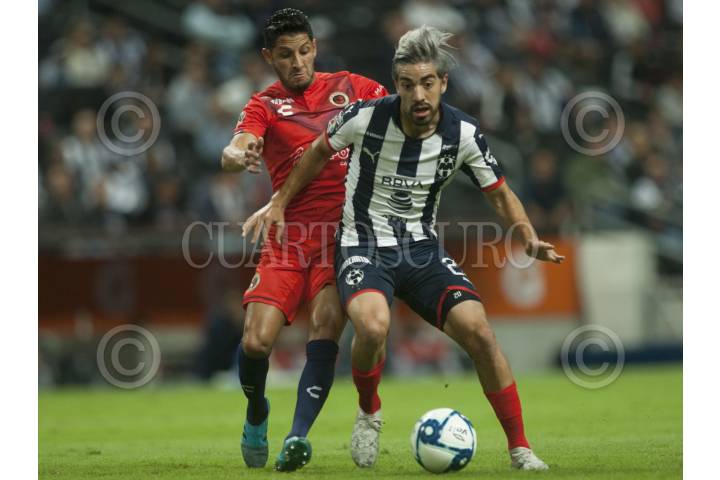 MONTERREY, NUEVO LEÓN, 02NOVIEMBRE2019.- Rodolfo Pizarro del equipo de los Rayados del Monterrey, se disputa el balón con Ángel Reyna del equipo de Veracruz, en el estadio BBVA Bancomer, partido correspondiente a la jornada 17 de la Liga MX, Apertura 2019. Marcador Final: Monterrey: 1 - Veracruz: 1 FOTO: GABRIELA PÉREZ MONTIEL /CUARTOSCURO.COM