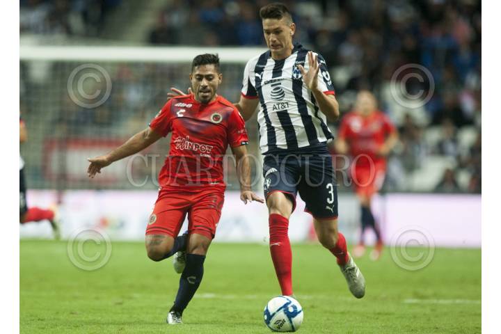 MONTERREY, NUEVO LEÓN, 02NOVIEMBRE2019.- César Montes del equipo de los Rayados del Monterrey, se disputa el balón con Jesús Henestrosa del equipo de Veracruz, en el estadio BBVA Bancomer, partido correspondiente a la jornada 17 de la Liga MX, Apertura 2019. Marcador Final: Monterrey: 1 - Veracruz: 1 FOTO: GABRIELA PÉREZ MONTIEL /CUARTOSCURO.COM