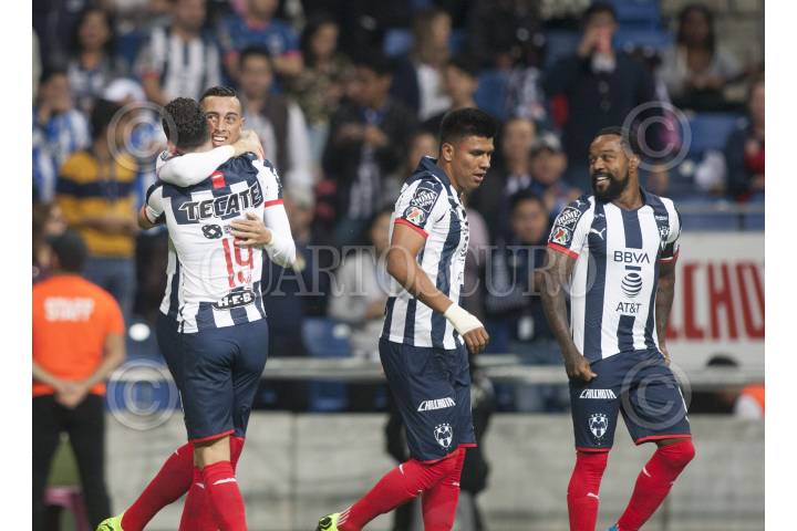 MONTERREY, NUEVO LEÓN, 28NOVIEMBRE2019.- Jugadores del equipo de los Rayados del Monterrey, celebran el gol, ante el equipo de Santos en el estadio BBVA Bancomer, partido correspondiente a cuartos de final en la Liguilla, Apertura 2019. Marcador Final: Monterrey: 5 - Santos: 2 FOTO: GABRIELA PÉREZ MONTIEL /CUARTOSCURO.COM