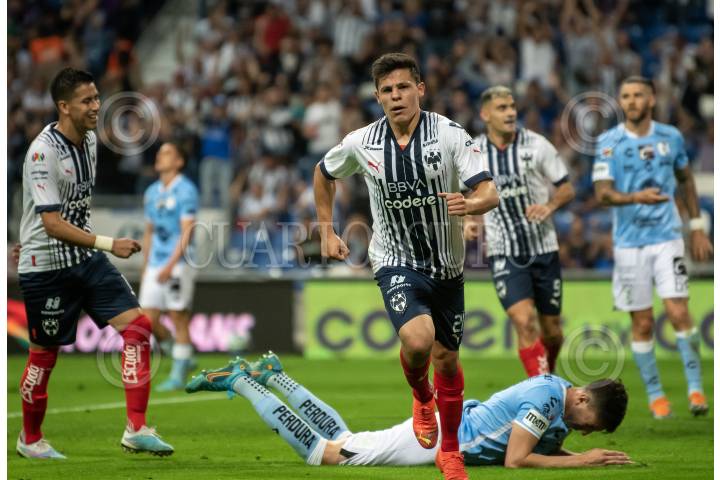 Arturo González de los Rayados del Monterrey, festeja el gol ante los Gallos del Querétaro, en el estadio BBVA, partido correspondiente a la jornada 7 de la Clausura 2023.