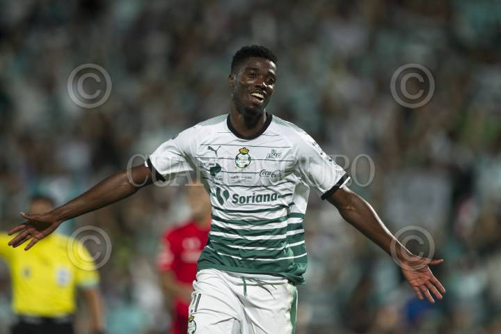 TORREÓN, COAHUILA, 17MAYO2018.- Jorge Djaniny Tavares del equipo de Santos, celebra el gol, ante el equipo de los Diablos del Toluca, en el estadio Corona, partido correspondiente a la final de ida de la Clausura 2018 de la Liga MX. Marcador Final: Santos: 2 - Toluca: 1 FOTO: GABRIELA PÉREZ MONTIEL /CUARTOSCURO.COM