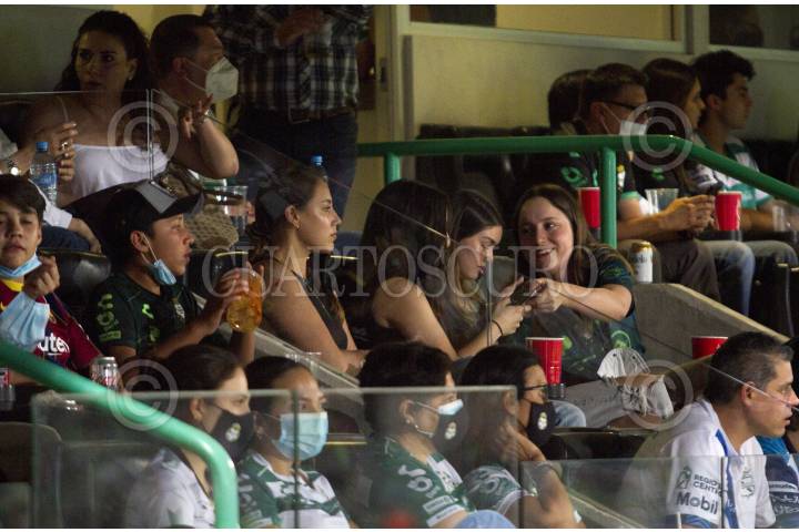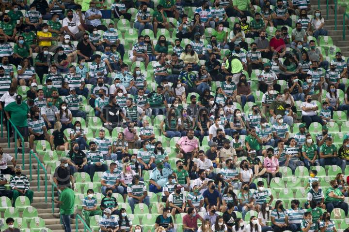 El estadio Corona lució lleno en todas sus áreas, sin respetar sana distancia, incluso el uso de cubre bocas durante el partido de Santos contra Puebla.