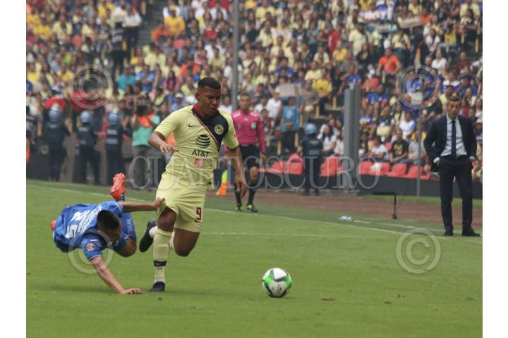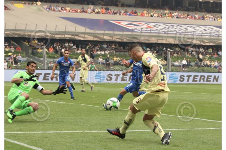 CIUDAD DE MÉXICO, 12MAYO2019.- Al Medio tiempo de los cuartos de final de la Liga BBVA Bancomer MX, los equipos de la Maquina Celeste del Cruz Azul y las Águilas del América mantiene el marcador en cero en la cancha del estadio azteca. FOTO: ROGELIO MORALES /CUARTOSCURO.COM