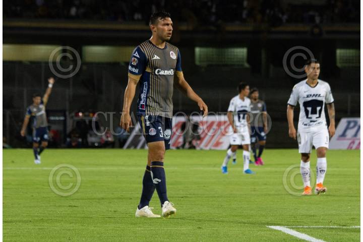 CIUDAD DE MÉXICO, 31JULIO2019.- Juan Portales, defensa del equipo Atlético de San Luis, durante la primera mitad del partido que sostuvieron en contra del equipo Pumas de la UNAM correspondiente a la jornada 1 de la Copa MX en el estadio Universitario. FOTO: ROGELIO MORALES /CUARTOSCURO.COM