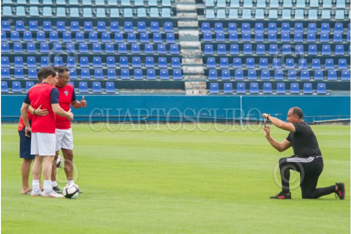 CIUDAD DE MÉXICO, 06SEPTIEMBRE2019.- Las escuadras de leyendas de los equipos del Atlante y Cruz Azul, realizaron un entrenamiento en la cancha del estadio Azul. FOTO: ROGELIO MORALES /CUARTOSCURO.COM