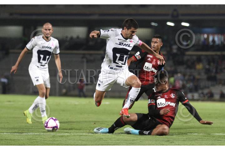 CIUDAD DE MÉXICO, 29OCTUBRE2019.- Los pumas de la UNAM, empatan al medio tiempo 1-1 frente al equipo de los zorros del Atlas, con anotación de Carlos Gonzales y Jesús Isijara, respectivamente, esto correspondiente a la jornada 16 de la Liga MX disputado en el estadio México 68 en Ciudad Universitaria. FOTO: ROGELIO MORALES /CUARTOSCURO.COM