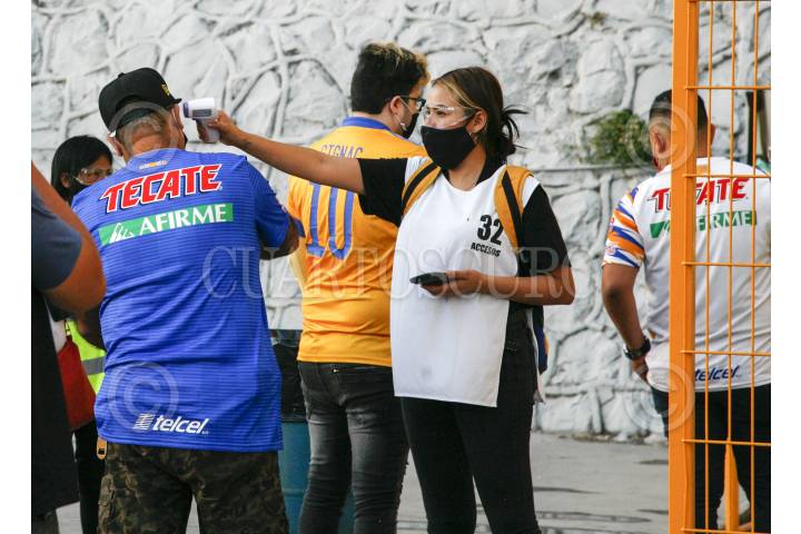 Los aficionados de Tigres pasan por un filtro de seguridad para ingresar a la estadio Universitario para apoyar a su equipo en la jornada 14 contra las Águilas del América.