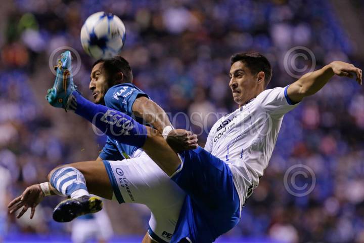 Kevin Ramirez y Erick Aguirre durante el partido entre Club Puebla y Monterrey de la jornada 6 de la Liga Mx.