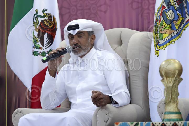 El embajador de Qatar en México Mohammed Al-kuwari ofreció conferencia en Casa Puebla donde además se exhibieron maquetas de los estadios que serán sede en la Copa del Mundo 2022.